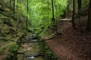 The Amselgrund is the name given to the valley of the Grünbach stream in the heart of Saxon Switzerland in Eastern Germany. It runs from Niederrathen upstream to Rathewalde. The wild and romantic valley takes hikers through the Rathen rock basin with its bizarre rock formations.