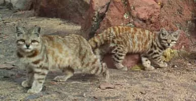 The Andean mountain cat is a small wild cat native to the high Andes that has been listed as Endangered on the IUCN Red List because fewer than 2,500 individuals are thought to exist in the wild. It was first described by Emilio Cornalia who named it in honour of Jacobita Mantegazza.