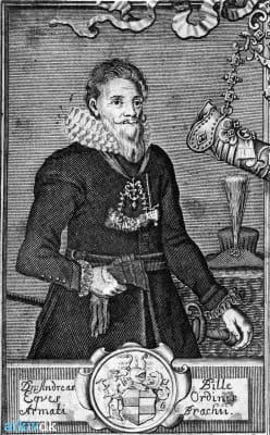 Anders Bille was the Danish Rigsmarsk, the officer leading the entire armed forces of Denmark, from 1642. From 1635 to 1643, Bille was the Governor of Ösel. Bulle was mortally wounded in the defence of Fredriksodde during the Northern Wars against Sweden, and died after a few days in captivity.
