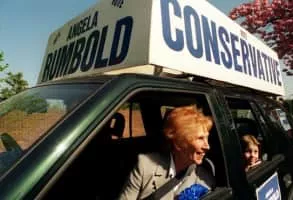 Dame Angela Claire Rosemary Rumbold DBE PC was a British Conservative politician who served as the Member of Parliament from a 1982 by-election until the 1997 general election.