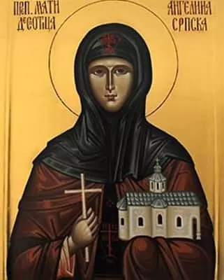 Angelina Branković, née Arianiti, was the Albanian Despotess consort of Serbian Despot Stefan Branković, and a daughter of Prince Gjergj Arianiti and his first wife Maria Muzaka. For her pious life she was proclaimed a saint and venerated as such by the Serbian Orthodox Church as Venerable Mother Angelina.