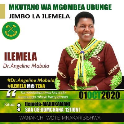 Angeline Mabula is a Tanzanian politician belonging to the ruling Chama Cha Mapinduzi party. She is the current Minister of lands and human settlement development. She is a Member of Parliament for Ilemela.