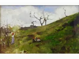 Angiolo Tommasi was an Italian painter, active in the Macchiaioli movement. He was the brother of the painter Ludovico and cousin of the painter Adolfo Tommasi; all three were influential for the arts in their native Tuscany in the late 19th and early 20th-centuries. Angiolo painted both genre and landscape themes.