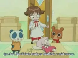 Animal Yokochō is a Japanese manga and anime series aimed at children about a little girl who has a doorway to another world in her room, from which three bizarre and frequently-annoying stuffed animal-like creatures emerge to make her life "interesting".