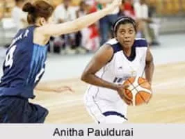 Anitha Pauldurai is an Indian basketball player who has been the captain of the Indian Women's National basketball team. 18 years played for Indian Women National team. Anitha is the first only Indian woman to have played nine Asian Basketball Confederation championships continuously representing the national squad.