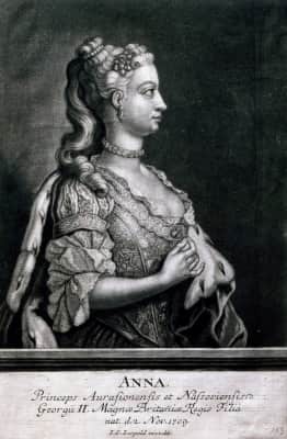 Anne, Princess Royal and Princess of Orange was the second child and eldest daughter of King George II of Great Britain and his consort Caroline of Ansbach. She was the wife of William IV, Prince of Orange, the first hereditary stadtholder of all seven provinces of the Northern Netherlands.