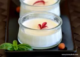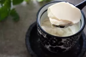 Annin tofu or almond tofu is a soft, jellied dessert made of apricot kernel milk, agar, and sugar. It is a traditional dessert of Beijing cuisine, Cantonese cuisine, and Japanese cuisine. It is similar to blancmange.