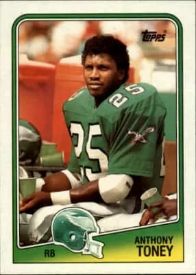 Anthony Toney is a former professional American football running back for five seasons in the National Football League for the Philadelphia Eagles. He played college football at Texas A&M University and was drafted in the second round of the 1986 NFL Draft by the Eagles.