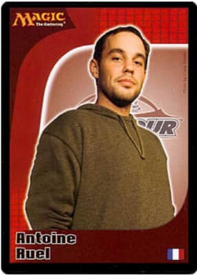 Antoine Ruel is a professional Magic: The Gathering player. He has reached the top eight at the Pro Tour four times, including a win in Los Angeles in 2005. With eighteen Grand Prix top eights, he is among the most successful Grand Prix players of all time.