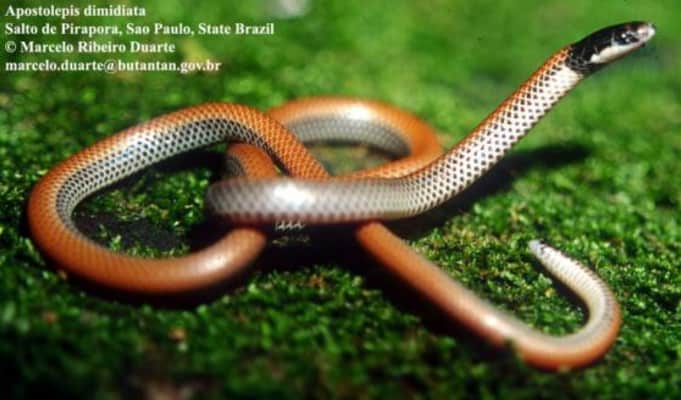 Apostolepis dimidiata, the common bilineate blackhead, is a species of snake in the family Colubridae. It is found in Brazil, Argentina, and Paraguay.
