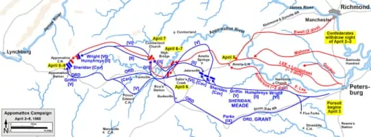 The Appomattox campaign was a series of American Civil War battles fought March 29 – April 9, 1865 in Virginia that concluded with the surrender of Confederate General Robert E. Lee's Army of Northern . . .