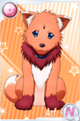 Arf (アルフ Arufu) is a speakable pet dog of the Testarossa family. She was originally the puppy form of a familiar (spelt as Alph) introduced in Magical Girl Lyrical Nanoha A's.