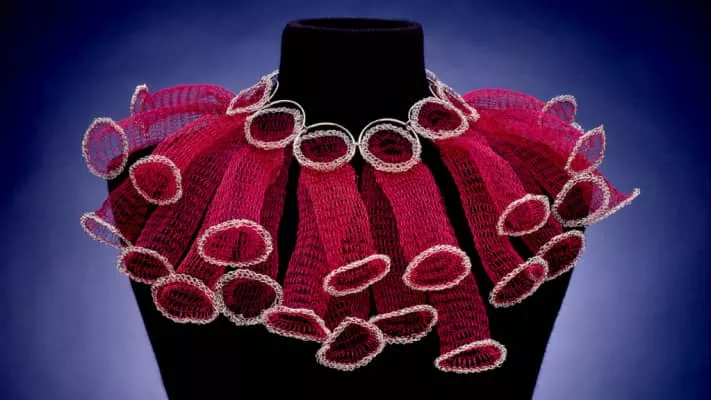 Arline Fisch is an American artist and educator. She is known for her work as a metalsmith and jeweler, pioneering the use of textile processes from crochet, knitting, plaiting, and weaving in her work in metal. She developed groundbreaking techniques for incorporating metal wire and other materials into her jewelry.