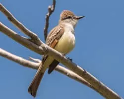 The ash-throated flycatcher is a passerine bird in the tyrant flycatcher family. It breeds in desert scrub, riparian forest, brushy pastures and open woodland from the western United States to central Mexico.