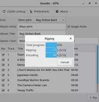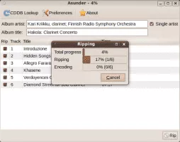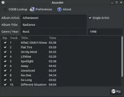 Asunder is a GTK+-based CD-ripping program that works on Linux. It doesn't have dependencies for GNOME libraries. The first version was released in January 2005, after that development stopped, and restarted again in the Summer of 2007. Asunder is free software released under the GNU General Public License Version 2.