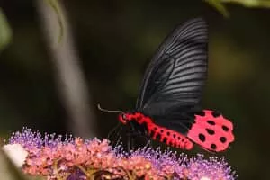 Atrophaneura horishana, the aurora swallowtail, is a species of butterfly from the family Papilionidae that is found in Taiwan. The wingspan is 110–130 mm. The wings are black. The body has red hairs. There is a large red patch on the underside of each hindwing. The wing veins are bordered in white.