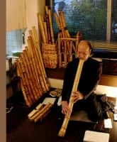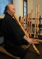Atsuya Okuda is a Japanese-born master player and teacher jinashi shakuhachi, an unrefined bamboo flute. Prior to dedicating his efforts to the bamboo flute, he was a professional jazz trumpet player from approximately 1965 until 1985.