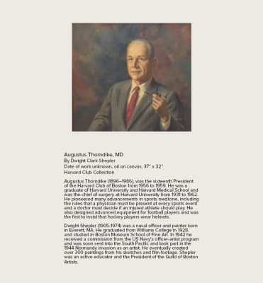 Augustus Thorndike, M.D., was the chief of surgery at Harvard University Health Service from 1931 to 1962 and a pioneer in sports medicine. Thorndike served in World War I and was a 1919 graduate of Harvard College and a 1921 graduate of Harvard Medical School.