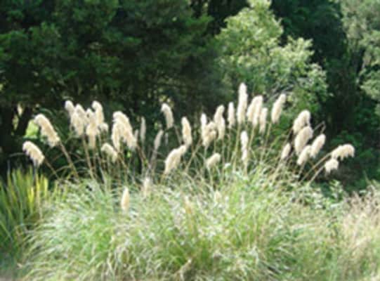 Austroderia fulvida, the toetoe, is a species of grass in the family Poaceae, native to New Zealand. As its synonym Cortaderia fulvida it has gained the Royal Horticultural Society's Award of Garden Merit as an ornamental.