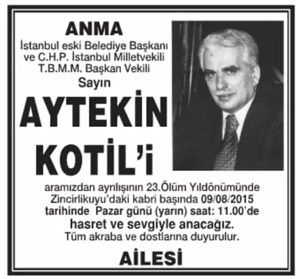 Aytekin Kotil (d. 21 Şubat 1934, Çayeli, Rize - ö. 9 Ağustos 1992, İstanbul), Türk siyasetçidir. İstanbul'un Cumhuriyet dönemindeki 23. Belediye Başkanıdır (1977-80). Sosyaldemokrat Halkçı Parti (SHP) İstanbul Milletvekilliği yaptı.d. 21 Şubat 1934, Çayeli, Rize - ö. 9 Ağustos 1992, İstanbul