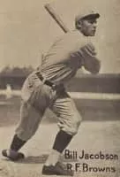 William Chester "Baby Doll" Jacobson was an American baseball outfielder. He played 11 seasons of Major League Baseball, principally with the St. Louis Browns, between 1915 and 1927. He also played for the Detroit Tigers, Boston Red Sox, Cleveland Indians, and Philadelphia Athletics.