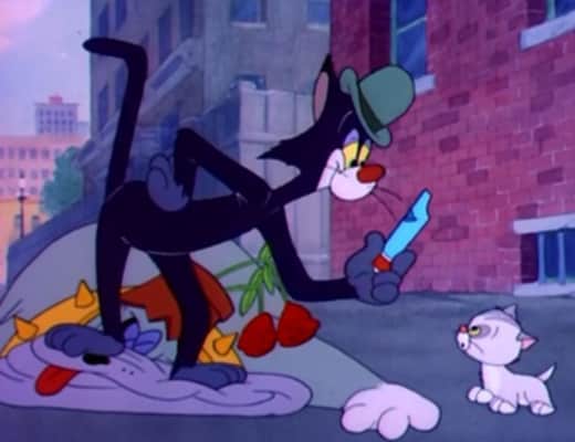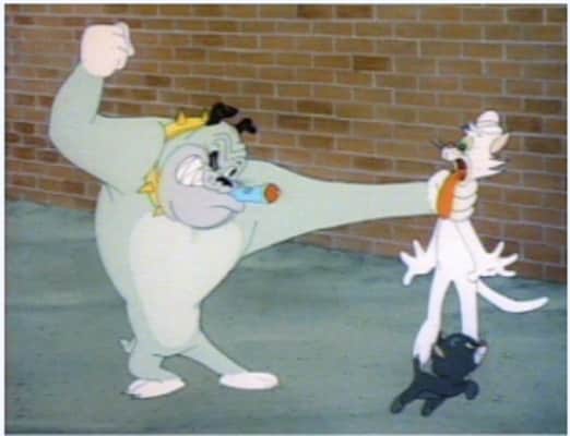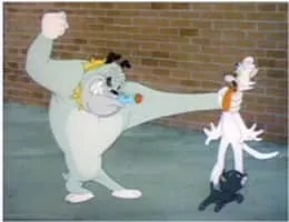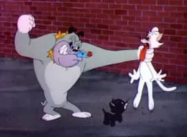 A black cat with the ability to bestow bad luck protects a small kitten from a mean-spirited bulldog.