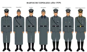 Bahnschutzpolizei in Nazi Germany was made up of full-time and part-time police officers who were employees of the Reichsbahn. The Bahnschutzpolizei was tasked with railway safety and also with preventing espionage and sabotage of railway property.