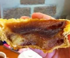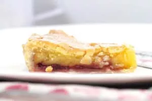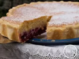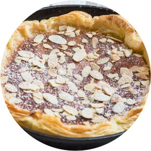 Bakewell pudding is an English dessert consisting of a flaky pastry base with a layer of sieved jam and topped with a filling made of egg and almond paste.