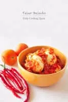 Balado is a type of hot and spicy bumbu found in Minang cuisine of West Sumatra, Indonesia. Balado sauce is made by stir frying ground red hot chili pepper with other spices including garlic, shallot, tomato and key lime juice in coconut or palm oil. The ingredients are quite similar to sambal hot chili paste.