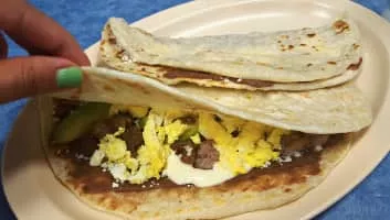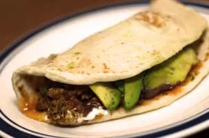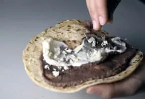 A baleada is a traditional Honduran dish composed of a flour tortilla, often quite thick, folded in half and filled with mashed fried red beans. It originates from the north coast of the country; Aside from beans, there is a whole variety of ingredients that can be added to the Baleada.