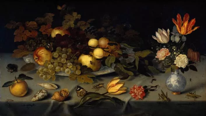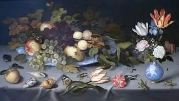 Balthasar van der Ast was a Dutch Golden Age painter who specialized in still lifes of flowers and fruit, as well as painting a number of remarkable shell still lifes; he is considered to be a pioneer in the genre of shell painting. His still lifes often contain insects and lizards.