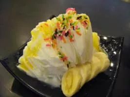 Baobing, also known by its Taiwanese Hokkien name Tsuabing, is a shaved ice dessert found in China. It is especially popular during the summer. Baobing was eaten in China as early as the seventh century AD.