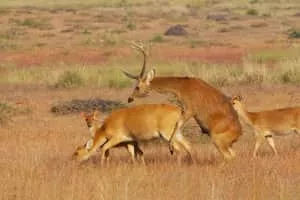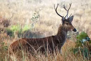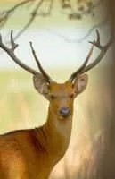The barasingha, also called swamp deer, is a deer species distributed in the Indian subcontinent. Populations in northern and central India are fragmented, and two isolated populations occur in southwestern Nepal. It is extinct in Pakistan and Bangladesh.