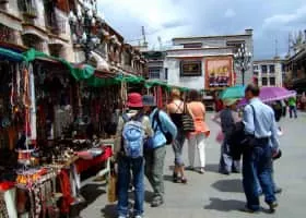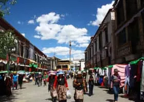 The Barkhor is an area of narrow streets and a public square located around Jokhang Temple in Lhasa, Tibet, China. The Barkhor is a popular devotional circumambulation for pilgrims and locals.