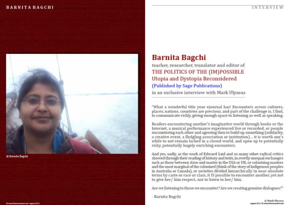 Barnita Bagchi is a Bengali-speaking Indian feminist advocate, historian, and literary scholar. She is a faculty member in literary studies at Utrecht University, and was previously at the Institute of Development Studies, Kolkata at the University of Calcutta.
