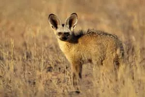 The bat-eared fox is a species of fox found on the African savanna, named for its large ears, which are used for thermoregulation. Fossil records show this canid first appeared during the middle Pleistocene, about 800,000 years ago.