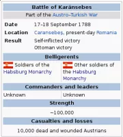 The Battle of Karánsebes was a friendly fire incident in the Austrian army, recorded as having occurred during the night of 21–22 September 1788, during the Austro–Turkish War of 1787–1791.