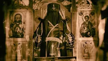Batushka is a Polish black metal band formed by Krzysztof Drabikowski. Their music and lyrics, which are written exclusively in Old Church Slavonic language, are inspired by the Eastern Orthodox Church. The band members wear habits and eastern orthodox schemas during live performances to conceal their identities.