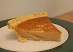 A bean pie is a sweet custard pie whose filling consists of mashed beans, usually navy bean, sugar, eggs, milk, butter, and spices. Common spices and flavorings include vanilla, cinnamon and nutmeg. Variations can include cloves and ginger.