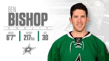 Benjamin Manning Bishop III is an American former professional ice hockey goaltender under contract to the Buffalo Sabres of the National Hockey League. Bishop previously played for the St. Louis Blues, Ottawa Senators, Tampa Bay Lightning, Los Angeles Kings, and Dallas Stars of the NHL.