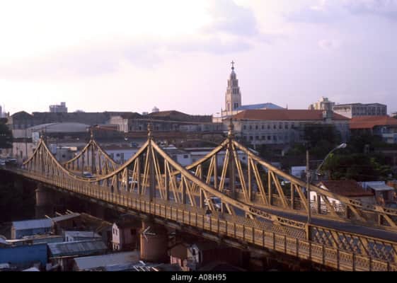 The Benjamin Constant Bridge, also known as Metallic Bridge, is a suspension structure located on Sete de Setembro Avenue that crosses the Igarapé do Mestre Chico between the Cachoeirinha and Centro neighborhoods, in the Brazilian city of Manaus, capital of the state of Amazonas.