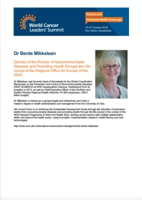 Dr Bente Mikkelsen is Director, Non-Communicable Diseases in the division of UHC/Communicable and Noncommunicable diseases, WHO Headquarters (Geneva, Switzerland).Geneva, Switzerland