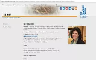 Beth Baron is Professor of History at City College and Director of the Middle East and Middle Eastern American Center at The Graduate Center, CUNY. She is the author of Egypt as a Woman: Nationalism, Gender, and Politics (2005) and The Women's Awakening in Egypt: Culture, Society, and the Press (1994).