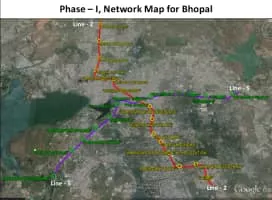 The Bhoj Metro is an under construction rapid transit system intended to serve the city of Bhopal, India, the capital of the Indian state of Madhya Pradesh. The total system consists of 2 corridors covering a distance of 27. 87 kilometres. This project will cost ₹80 billion approximately.