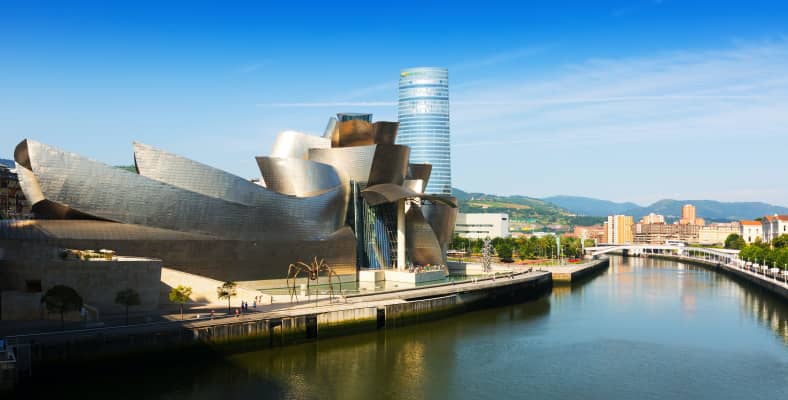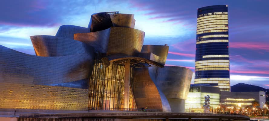 Bilbao, an industrial port city in northern Spain, is surrounded by green mountains. It’s the de facto capital of Basque Country, with a skyscraper-filled downtown. It’s famed for the Frank Gehry–designed Guggenheim Museum Bilbao, which sparked revitalization when it opened in 1997. The museum houses prominent modern and contemporary works, but it’s the curvy, titanium-clad building that receives the most attention. ― Google