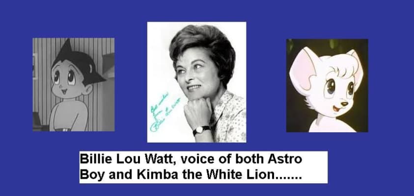 Billie Lou Watt was an American actress. She was best known as the original English dub voice of the title characters of the 1960s anime series Astro Boy and Kimba the White Lion, the character Elsie ...
