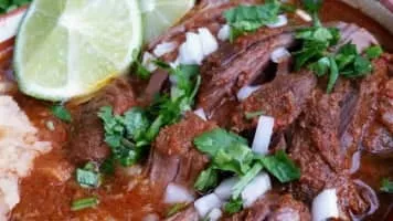 Birria is a Mexican dish from the state of Jalisco. The dish is a spicy stew, traditionally made from goat meat or mutton, but occasionally from beef or chicken. The dish is often served at celebratory occasions, such as weddings and baptisms, and holidays, such as Christmas and Easter.