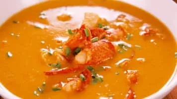 Bisque is a smooth, creamy, highly seasoned soup of French origin, classically based on a strained broth of crustaceans. It can be made from lobster, langoustine, crab, shrimp, or crayfish.