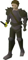 The Black Knight Captain is a prominent member of the Kinshra order in north-eastern Asgarnia. The captain could be seen in an inaccessible part of the The Black Knights' Fortress on Ice Mountain, alongside Greldo, a witch and her black cat.