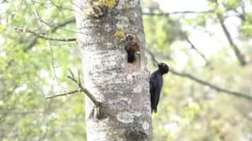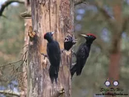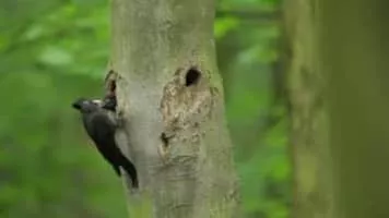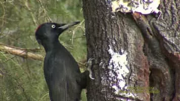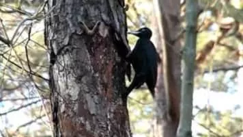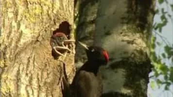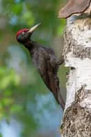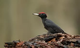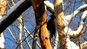 The black woodpecker is a large woodpecker that lives in mature forest across the northern palearctic. It is the sole representative of its genus in that region. Its range is expanding in Eurasia. It does not migrate.
